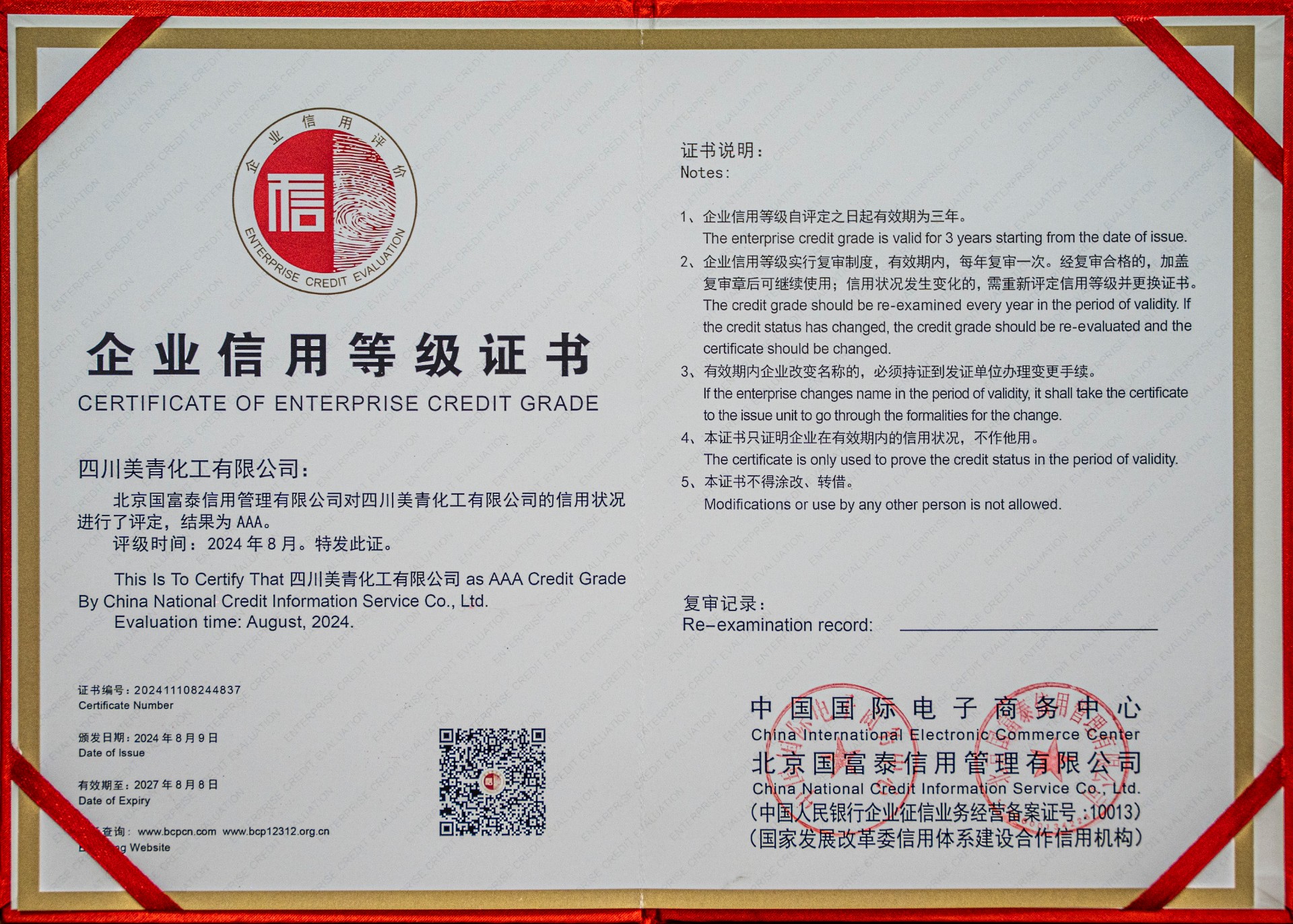 企業(yè)信用等級證書