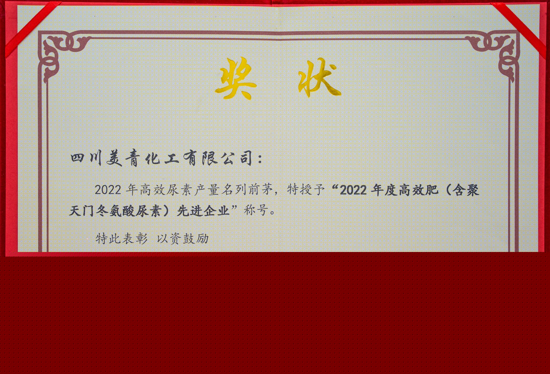 “2022年度高效肥(含聚天門冬氨酸尿素)先進企業(yè)”稱號