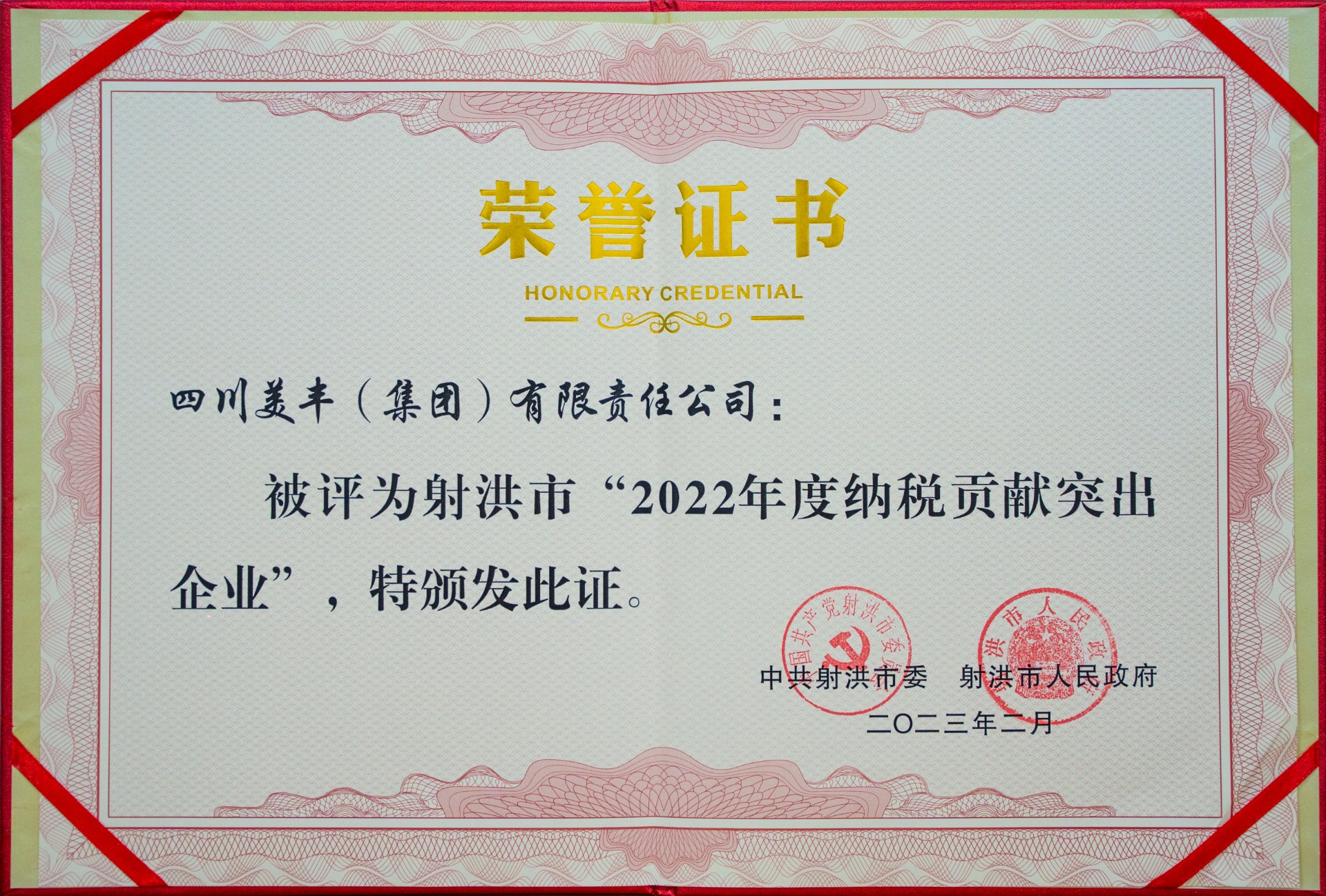 2022年度納稅貢獻突出企業(yè)證書