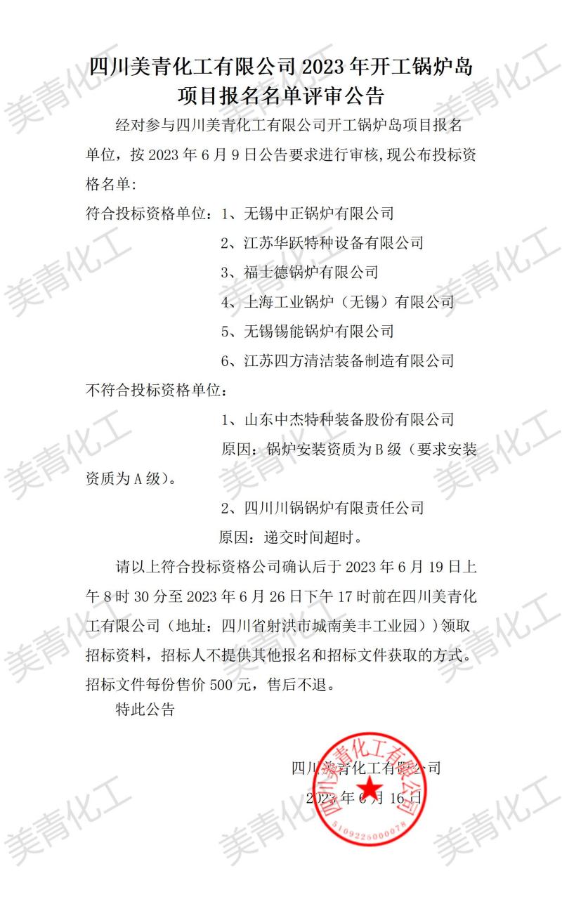 開工鍋爐島項(xiàng)目報(bào)名名單評(píng)審公告