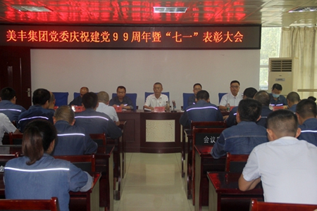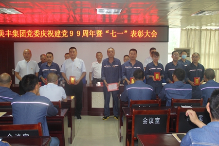 2020年6月29日下午,美豐集團(tuán)黨委在美青化工生產(chǎn)大樓二會(huì)議室召開慶祝建黨99周年暨“七一”表彰大會(huì)。公司黨委書記、總經(jīng)理任國建,黨委委員、副總經(jīng)理宋根、謝安、何琳,黨委委員、總經(jīng)理助理張鵬,黨委委員、總會(huì)計(jì)師李旭東出席了會(huì)議。會(huì)議由張鵬主持。