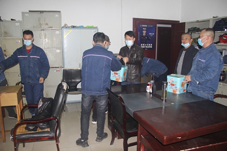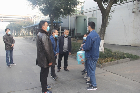 銀鼠隨風辭舊歲,金牛順氣報新春。2月12日,農(nóng)歷大年初一,集團公司領導任國建、謝安、何琳、李旭東代表集團黨委和經(jīng)理班子,來到美青化工廠區(qū)向春節(jié)期間堅守崗位的員工們致以誠摯的節(jié)日問候,叮囑大家春節(jié)期間要注意身體健康、保持戰(zhàn)斗力,共同做好疫情防控和安全生產(chǎn)工作。